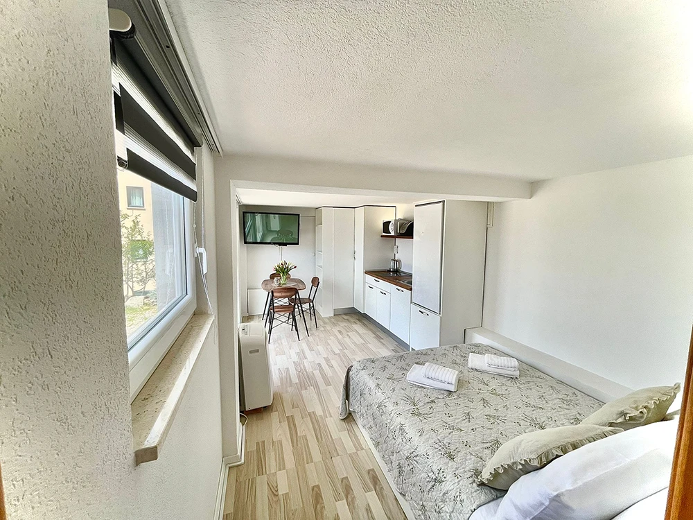 The studio is equipped with a kitchen, a bathroom, a bed for 2 people, WiFi and a